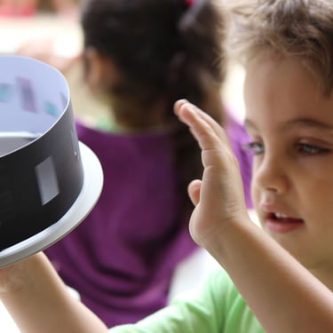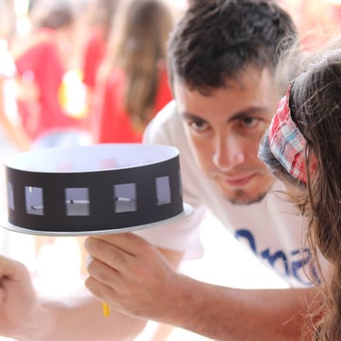 Folioscópio, taumatrópio e zootrópio são alguns dos instrumentos de animação que você aprenderá a criar. Pareceu estranho? Fique tranquilo pois esses brinquedos que deram origem ao Cinema de Animação são mais simples e fascinantes do que você imagina! O taumatrópio, por exemplo, surgido por volta de 1820, é um brinquedo que foi bastante popular na era Vitoriana. Trata-se de um disco de papel com imagens pintadas em cada um dos dois lados, preso em suas extremidades a um fio ou barbante. Ao girá-lo rapidamente, têm-se a ilusão de ótica de movimento, uma vez que as imagens se combinam entre si e fundem-se em uma única. Um exemplo disso é que, ao se desenhar um pássaro em um lado do disco, e uma gaiola do outro, ao girá-lo, tem-se a sensação de que o animal está dentro da gaiola. A palavra Taumatrópio vem do grego thaûma (maravilha) + tropos (virar, transformar) que significa "que se transforma em algo maravilhoso".